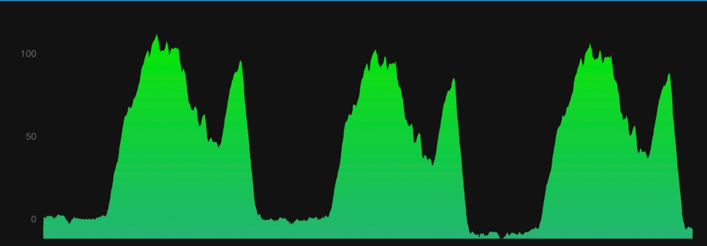 Herunder ses højdeprofilen fra 21K (3 omgange) og rutekortet fra Trace de Trail