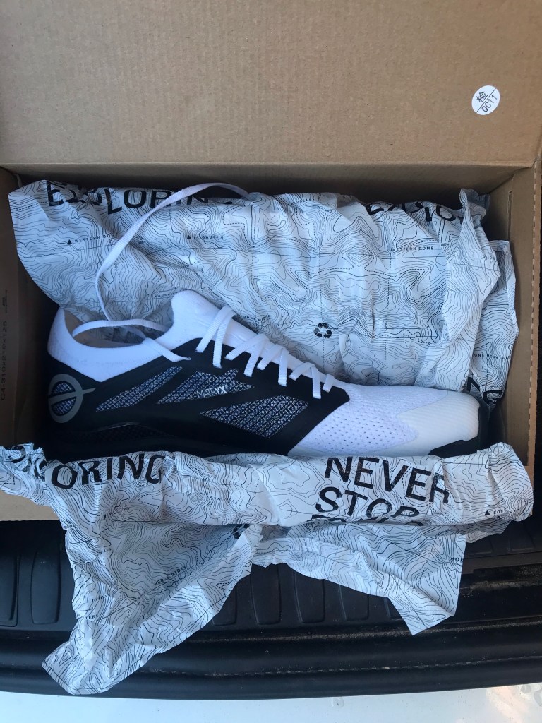 Skoen kom på og de er mærkbart anderledes end andre trailsko! Når du træder ned i den kan du mærke….. Hmmm bedste måde at beskrive det på er nok, at man føler sig spændt op til trail-lir 🙂