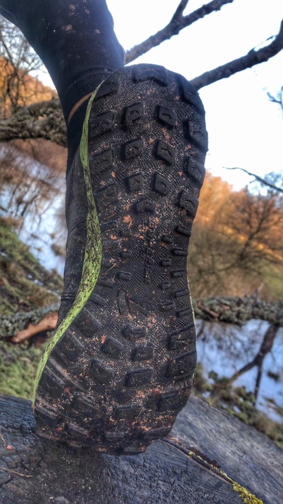 Det var blevet tid til intervallerne og der skulle fart på i sporet. Sporet der blev løbet på var dejligt mudret med træbroer og paveer, så skoene fik noget at se til. Som tidligere nævnt, så er der 4 mm knopper under skoene og mange “rigtige” muddersko er helt oppe omkring 8 mm kropper, men skoene overraskede mig virkelig positivt i mudret og stod udemærket, når man tænker på der “kun” er 4 mm knopper. En anden ting der er fedt, er måden knopperne er placeret på. Her er god afstand imellem dem og det gør mudder ikke samler sig under skoene. På paveerne og træbroer har jeg aldrig oplevet en sko der stod bedre. Det gummi der bruges her i ydersålen er fantastisk på sten og træbroerne i sporet!