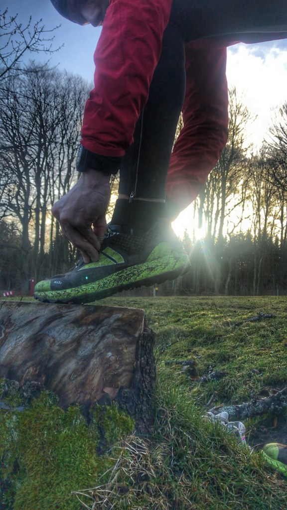 Jeg havde faktisk gået en lille tur i skoene om aften for at få dem til at sætte sig lidt, vænne min fod til dem osv. da de næste dag skulle ud på et teknisk mtb spor, hvor der skulle løbes intervaller i sporet.